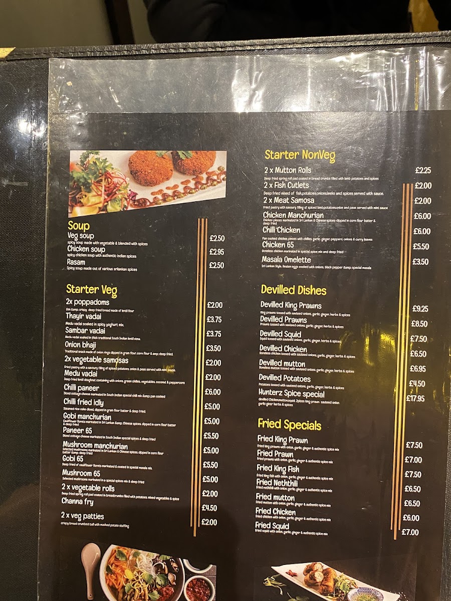 Welcome to Hunterz Spice, a culinary gem located at 489 London Road, Worcester Park. Renowned for its flavor-packed menu, this vibrant establishment specializes in devilled dishes that are a true feast for the senses. Highlights include the Devilled King Prawns (£10.99) and the highly recommended Devilled Chicken (£7.99), both perfectly spiced to tantalize your taste buds.